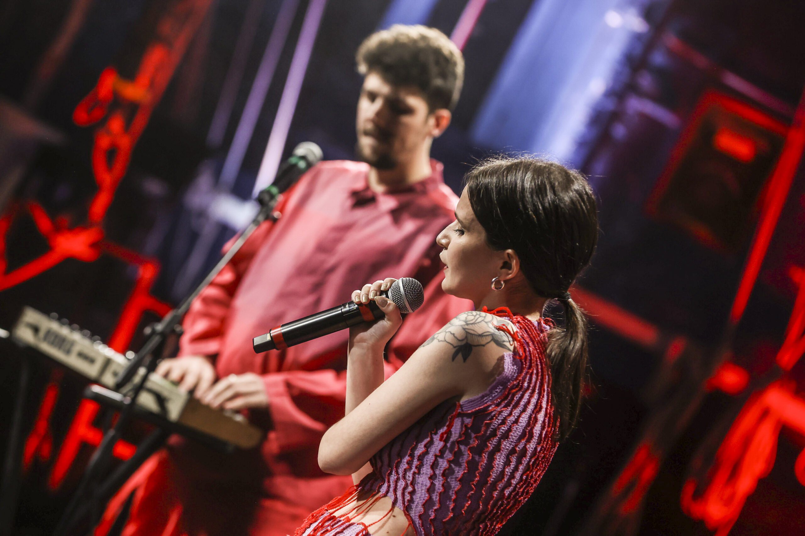 È difficile esibirsi dopo questi minuti di commozione, eppure Anna e Andre, in arte otto x otto, lo fanno bene. La band veronese trascina il pubblico con la sua energia vitale e contagiosa. Attraverso la metafora dell’altalena emotiva, il brano Preferibilmente agosto si fa portavoce dell’ansia di un’intera generazione, a cui contrappone l’antidoto della musica, che assolve a una funzione terapeutica e liberatoria.