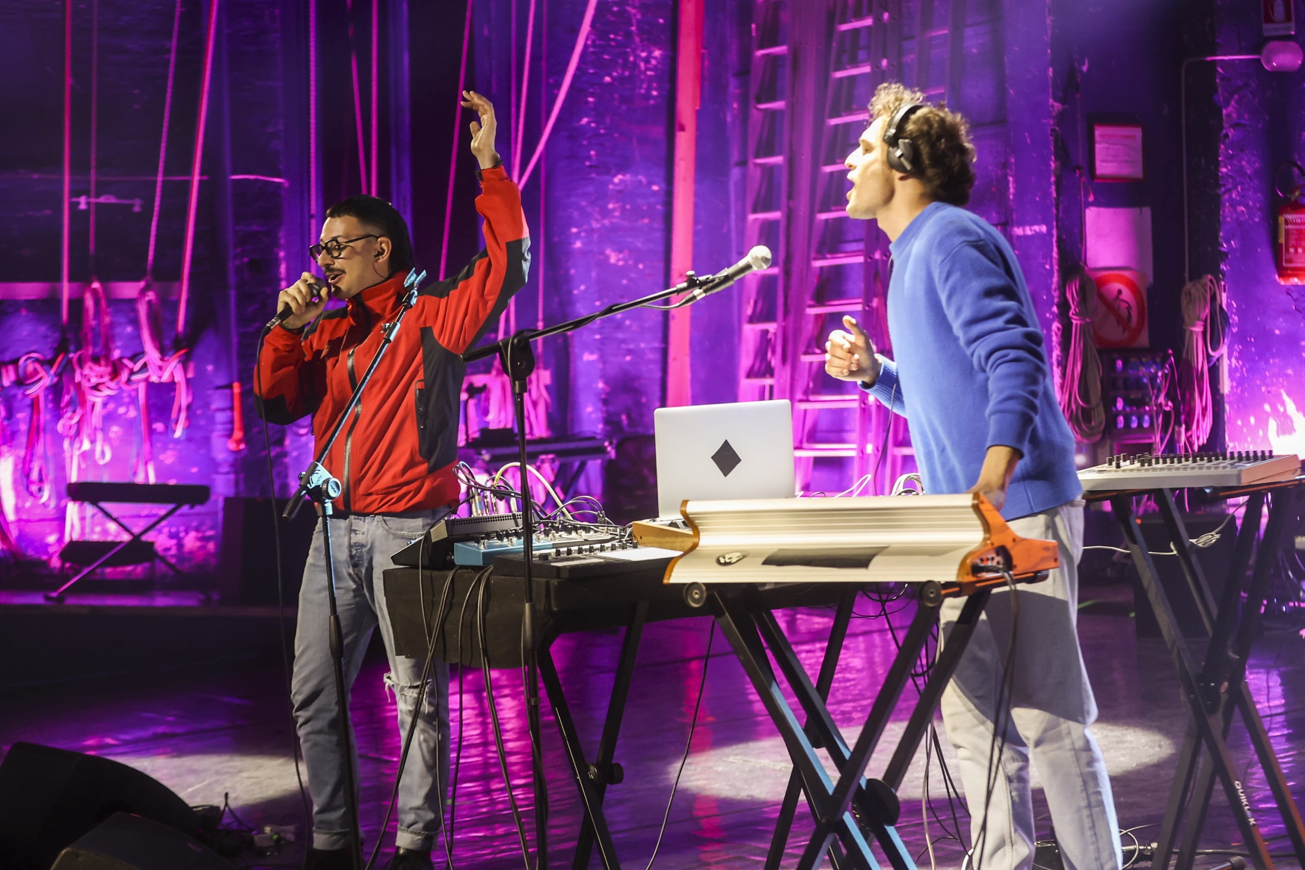 Questo non significa che possiamo proporre lo stesso spettacolo in un club o in in teatro. Le regole ci sono ed è bello giocarci, magari infrangerle – sempre bello suonare la techno a ridosso di gente che cena -. Da X Factor abbiamo imparato che si possono dire molte cose anche in due minuti, anzi, avere così poco tempo è un grande esercizio di concentrazione immediata. Nei locali ci possiamo invece permettere di giocare di più, sperimentare e creare flussi di energia diversi; lì impariamo che i live sono una cosa differente dai dischi, immensamente significativa. Suonare in teatro come per Musicultura, infine, ti insegna a raccontarti; è qualcosa che sta a cavallo delle due dimensioni e l’attenzione che il pubblico ti dà è davvero stimolante. Ha qualcosa di rituale, di sacro. Tutto questo ci ha portati a scrivere più per l’altro e meno per noi stessi.